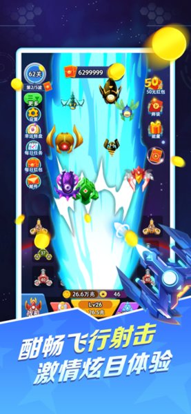 作为一款可以轻松在线赚钱的飞行射击类型的游戏,玩家需要将一个个小型的飞机合成战机在广阔的天空中与敌人周旋、战斗,取得胜利后会有丰厚的红包奖励,还能提现。真正免费领取红包的版本,通过趣味打飞机,来解锁更多红包呢。游戏玩法和雷电类似,但是核心思想就是加入了红包获取玩法,在这里免费解锁大额红包,轻松畅玩对应关卡。