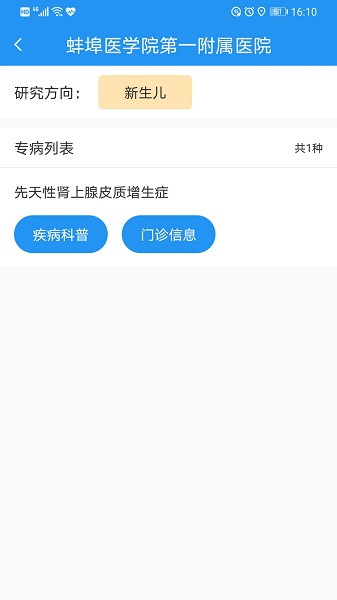 2、医疗机构详情、门诊时间表可向患者展示本机构的研究方向、罕见病诊疗列表及门诊时间,方便患者选择医疗机构就诊。