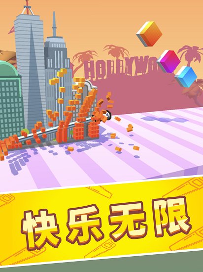 4、一款画面设计清新卡通,玩法非常魔性减压的粉碎切割游戏;