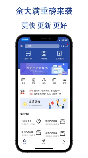 金大满专为商户收银打造,有了它,商户收银更加轻松,为商户扫码收款功能,让收银更加快捷,更加准确,避免了传统的手动找零产生的误差,让收款变得更加高效,轻轻松松查看账单,十分方便,有需要的朋友快来下载吧!