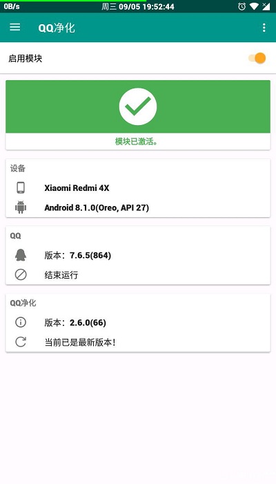 ——打开对应框架的模块管理页面,确保『[QQ净化]』是已经被勾选的状态