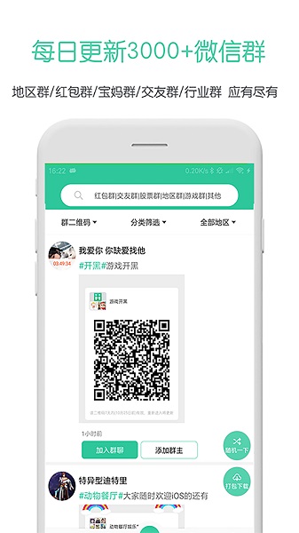 6.微信群二维码:每天更新3000+最新微信群,可一键添加微信群,方便快捷的扩大你的人脉圈。