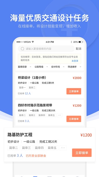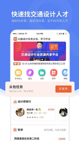 专门致力于公路行业设计任务众包的平台,连接公路设计任务和公路设计师,共享公路行业设计师。