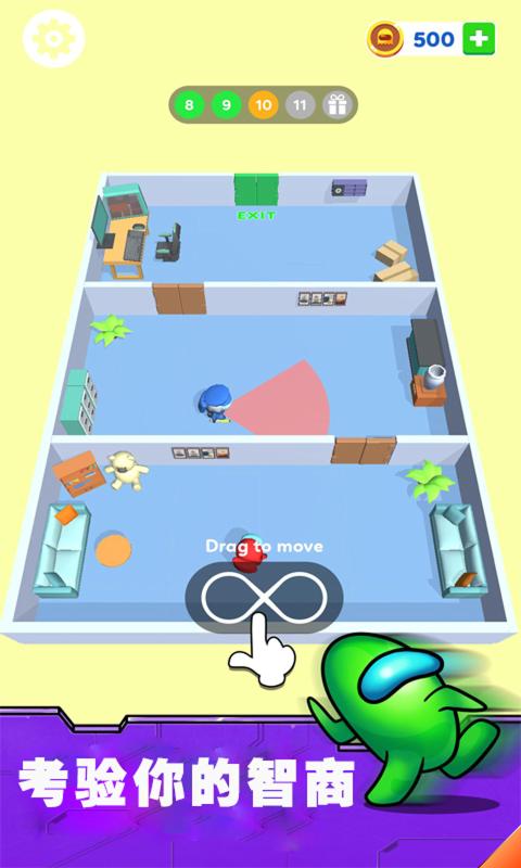 你抓不到我游戏生动有趣的休闲闯关游戏。小心翼翼地躲避凶手的追捕,寻找出路,伺机而动,逃出生天!游戏运行稳定画面清晰流畅,卡通风格清晰可爱,操作简单易于上手,玩法解压爽快!