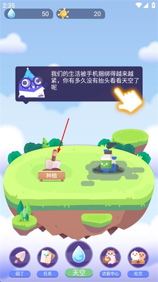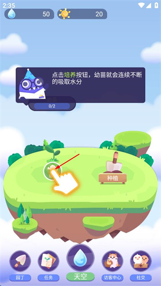 4、完成专注练习后返回主页面,点击培养按钮让幼苗吸取水分。