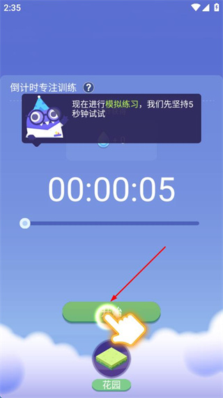 2、在主页面点击种植选项,进入对应的专注训练准备环节。