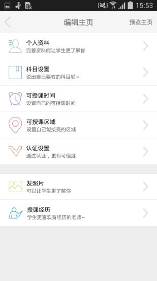 2、增加授课区域、授课时间、授课科目和授课经历及身份认证等功能;
