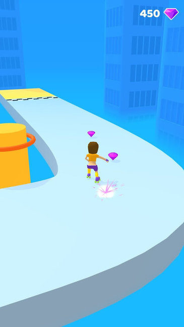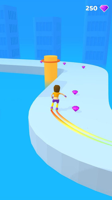 非常简单的轮滑跑酷游戏,超级自由的游戏模式玩家任何时候都可以开启你的闯关,复杂的闯关道路使得游戏的难度加深,玩家需要时刻注意你对手的位置,注意超越他们成为第一名,借助弯道的优势去成为胜利者!