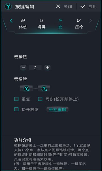 ◆你可以设置组合键,设置组合键后就可以一键同时按多个按钮了;