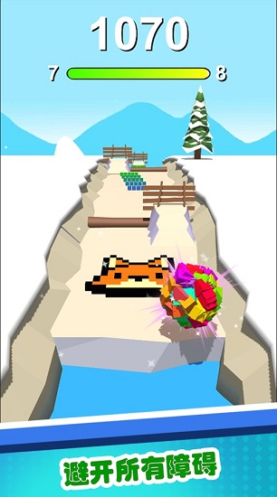 方块组成的图案五花八门,有的像爱心,有的像水母,有的像小白兔,甚至有的像米奇老鼠或者精灵球,趣味十足!障碍物也是千奇百态,有小山,小桥,小河,石壁,地刺,甚至还有搅碎机。请不要大意,注意闪避。