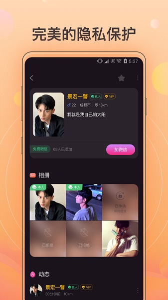 5、人脸识别、颜值认证、实名认证,确保真实靠谱;