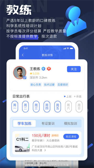 易练练车app改变了传统的预易练练车app方式,利用移动互联网特点,将线上预约与线下练车相结合,最大限度的优化学员与教练预易练练车app体验。