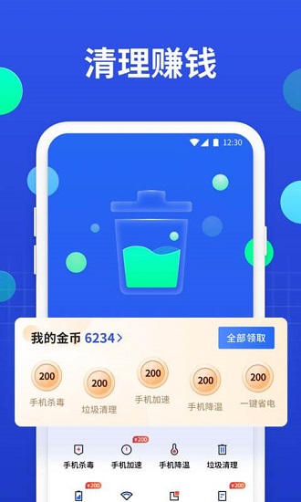 全能手机管家全新手机垃圾清理管家,可以边清理垃圾边赚点零花钱。智能一键加速,为你关闭后台占用内存大的应用,让手机运行更加流畅舒适。还有一键深度扫描,卸载残留垃圾可以快速为你清除掉,也可以手动筛选垃圾文件选择清理。欢迎有需要的朋友下载使用!