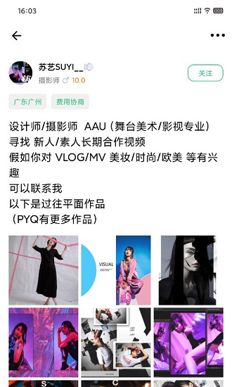 用户可以根据地区浏览摄影师和模特发布的各种信息,可以方便地向别人提交自己的拍摄请求。