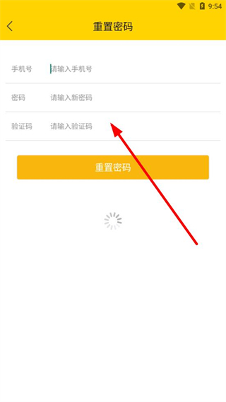 3、在重置密码界面,依次输入对应的手机号、新密码,再获取并填写验证码,准备完成密码重置。