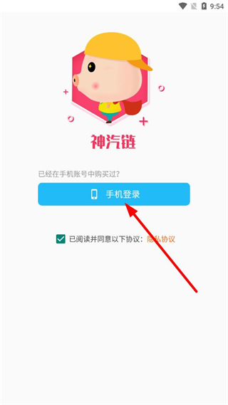 1、在神汽链登录页面,确认已勾选协议后,点击手机登录按钮,进入登录方式选择界面。