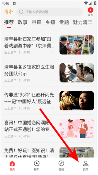 1、打开云上清丰APP的首页,点击底部我的,进入个人的页面。
