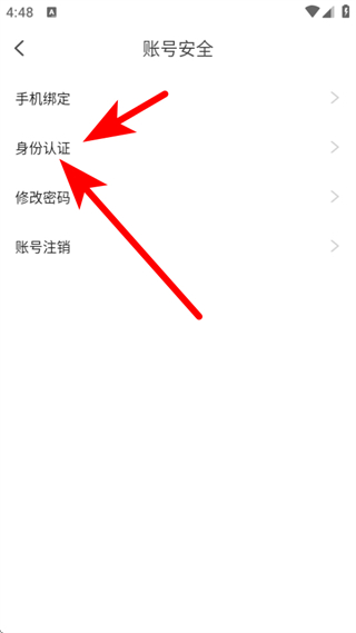 3、在账号安全的页面,点击身份认证,进入实名认证的页面。