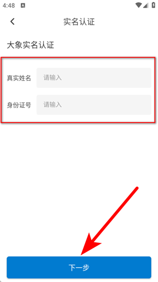 4、输入真实姓名和身份证号后,点击下一步,按照提示完成后续认证。
