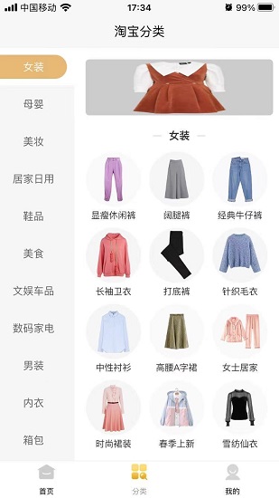3、同步查看淘宝产品的分类信息,利于用户在这里查找喜欢的淘宝产品;