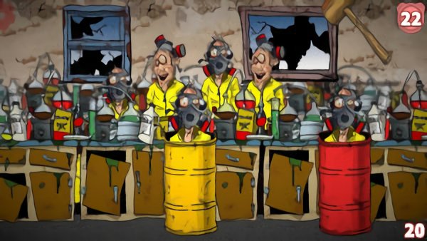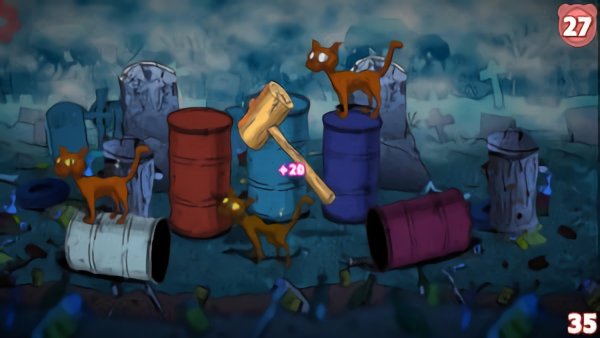3、别样的游戏画面,那些脑袋瓜子会骂人,别绕过它,用最大的力气去锤爆它吧。