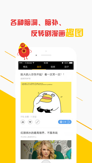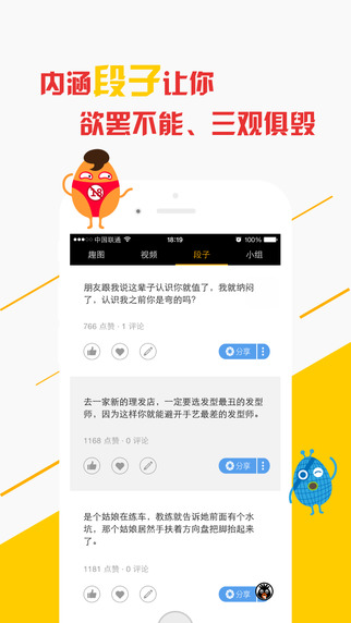 1.界面彻底改版,更加精致,细节更加完美,十分有利于阅读。堪称段子界颜值最高的App。