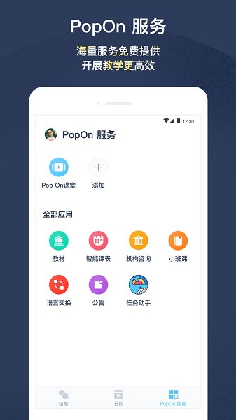 PopOn School app帮助全球院校在线交流母语,结合所学课程,与真人线上面对面沟通,提高英语水平,提高自己的口语能力,避免会写不会说的问题,软件为学生提供了跨国合作交流的平台,提升学生的国际理解力。感兴趣的用户快来下载吧!