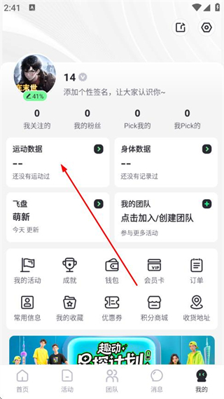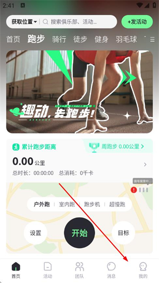 1、打开趣动APP,点击底部我的,进入个人页面。