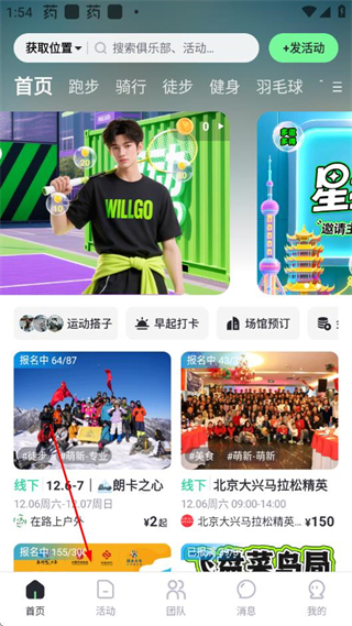 1、打开趣动APP首页,点击底部活动选项,进入活动列表页面。
