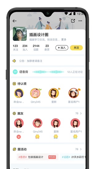 5、用户可以自行在线加入感兴趣的圈子,并能实时了解圈子动态;
