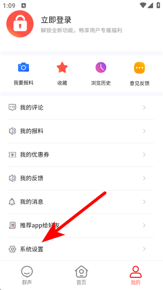 2、在个人的页面,点击系统设置的按钮,进入设置的页面。