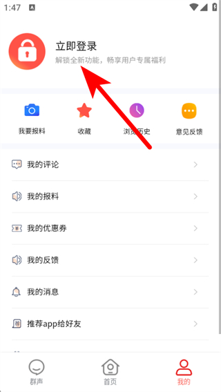 2、在个人中心界面,点击立即登录选项,进入登录页面。