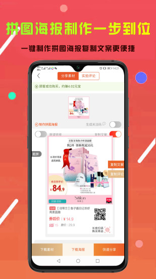 3、用户可以领券购买节省不少开销,分享好友还有额外的佣金奖励。