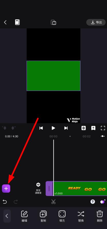 3、进入编辑界面,点击左下角+按钮,添加要剪辑的视频素材。