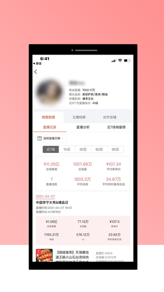 ※主播的直播记录随时查看,可以查看任意一天的直播数据