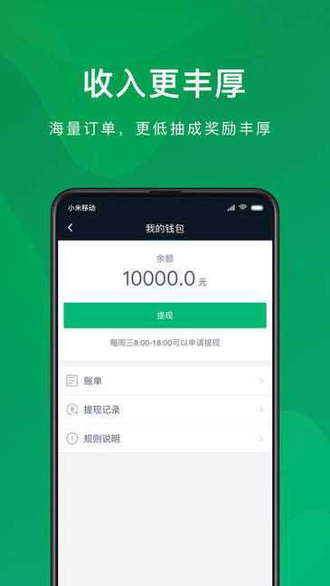 5、收益提现,简便的提现功能,一键提现即可快速到账;