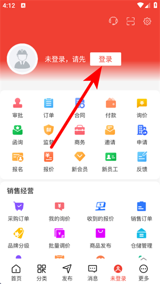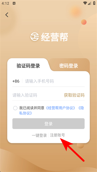 1、打开经营帮APP,点击右下角未登录的按钮,进入个人页面。