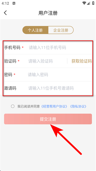 4、在页面选择个人注册或企业注册,填写信息即可完成注册操作。