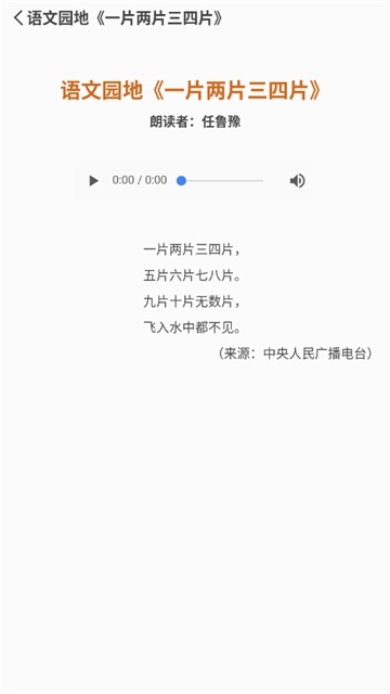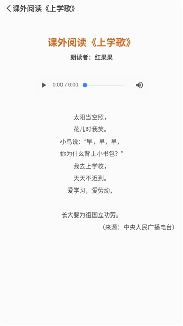 课本课文示范朗诵,专为中小学生打造的语文课本朗诵软件,软件包含初中小学生全部课文篇章目录,同学们可以轻松的使用课本朗诵功能进行朗诵学习,软件支持播放速度调节,有需要的同学可以下载使用!