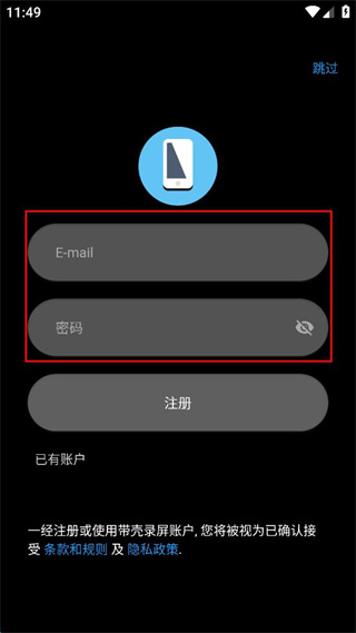 4、在注册页面依次输入E-mail和密码,点击“注册”按钮,完成账号注册操作。