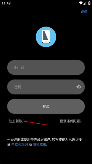 3、在账号登录界面点击“注册新账户”,进入注册页面。