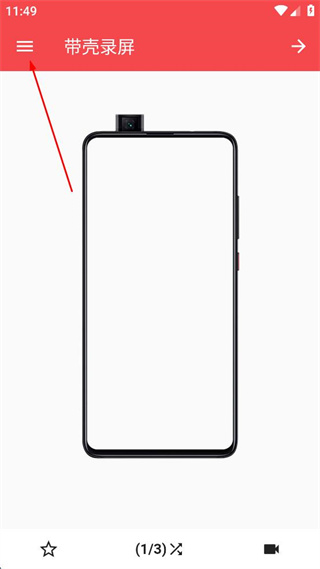 1、打开带壳录屏软件,点击左上角三条横线按钮,弹出功能菜单。