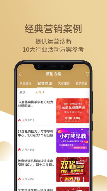 行业策划专家为企业制定专业的营销方案参考,真正解决实体企业经营难题;为门店提供全方位的运营诊断,10大行业活动方案,满足各种营销场景实战需求;