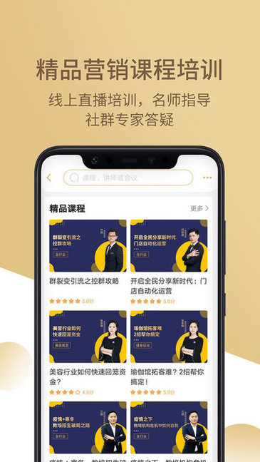 培训老师通过线上直播培训,社群专家答疑,行业大咖沙龙分享,助力商家营销落地。