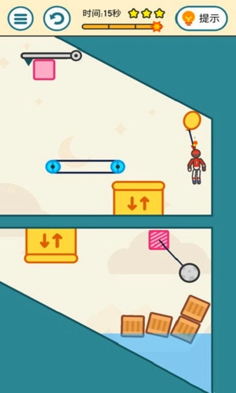 风趣十足的闯关手游,游戏中玩家需要将火柴人在原地爆炸之前进行解救。丰富的关卡设计,每一关都有不同的定位,创新的玩法,新颖的创造力,开动你的脑力智慧帮助火柴人进行闯关。