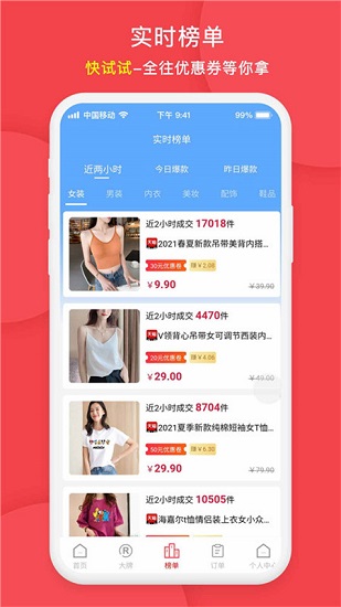 快试试是一款手机网购应用,在商城就能领取全网优惠券,海量优惠信息等您来拿,商城的商品资源丰富,各类产品资源随您挑选和购买,服饰、美妆、药品、洗护等产品品类全面,想买什么就选择什么。