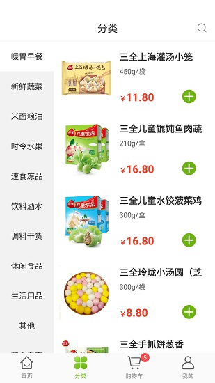 1、划分多种推荐的商品栏目,除了热卖商品外还有暖胃早餐、新鲜蔬菜以及米面粮油等推荐商品;
