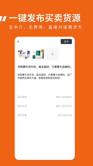 2、集发布货源、求购信息、行业动态于一身,传递一手临期商品信息;