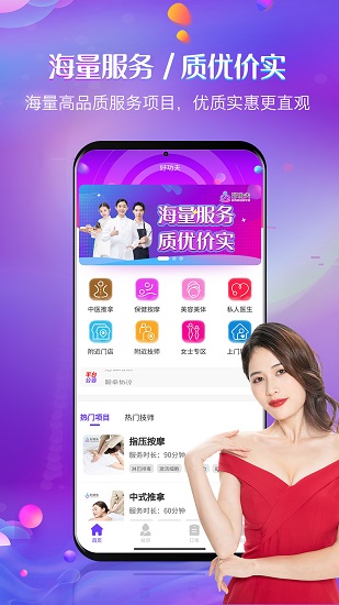 3.可以为你带来专业的按摩服务,随时有需要可以直接手机下单,不用出门就可以享受专业服务;
