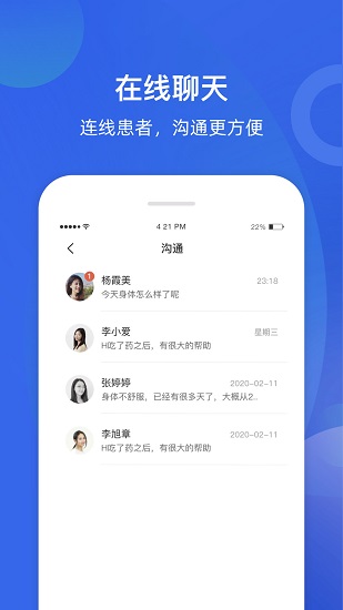 3.随身的诊室,医生只需要一部手机就可以在线进行操作,在线为用户提供实时服务,用户可以通过异地咨询的方式来查询,更加方便进行管理。